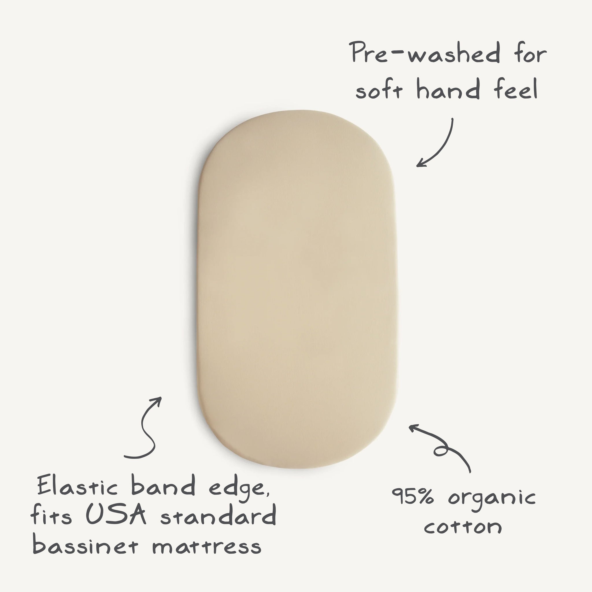 Made with organic cotton, our stretchy USA bassinet sheet is pre-washed for softness and stays breathable while keeping your baby warm and cuddly. With fully elastic edges and a material that offers a gentle stretch, parents can feel confident in a perfect fit wash after wash.