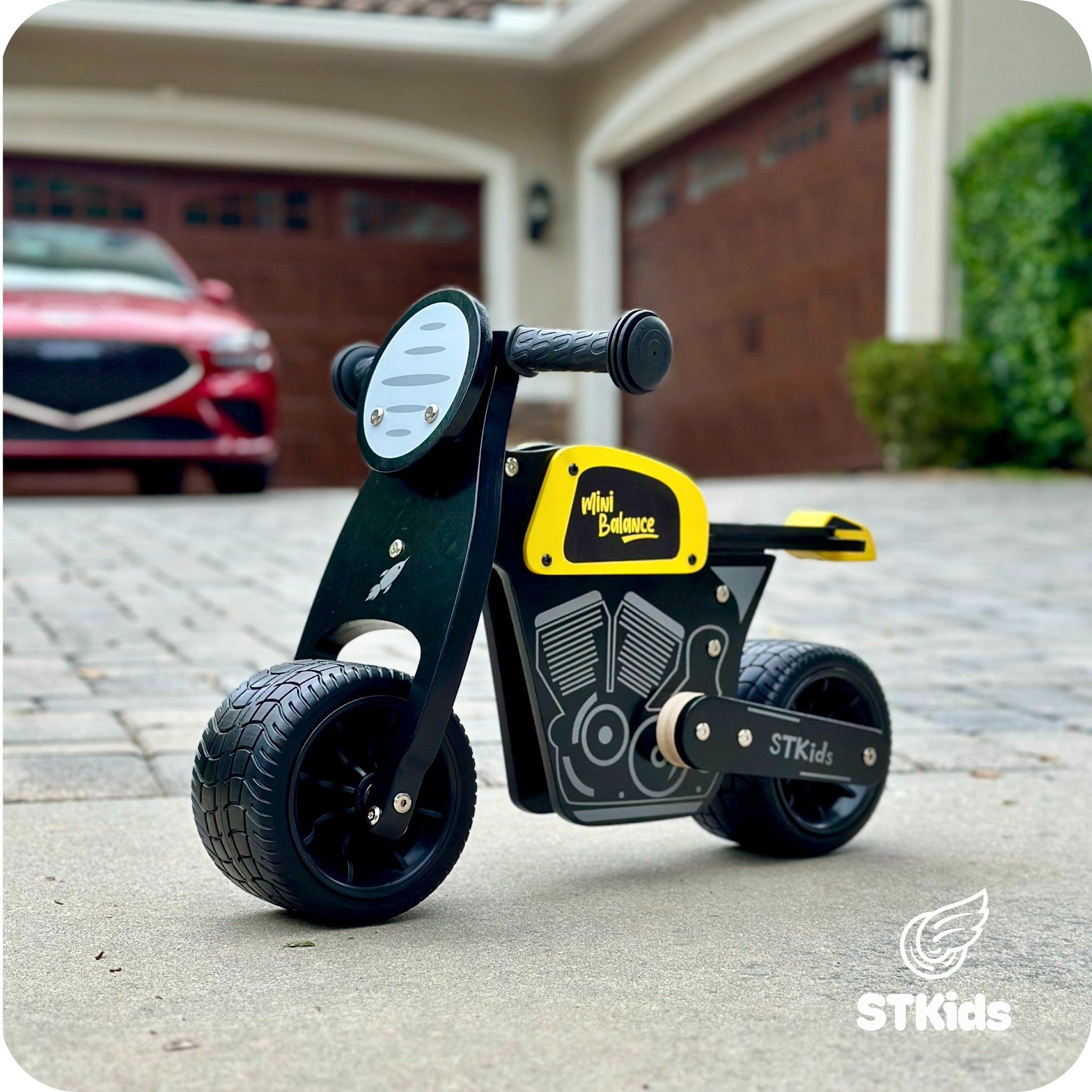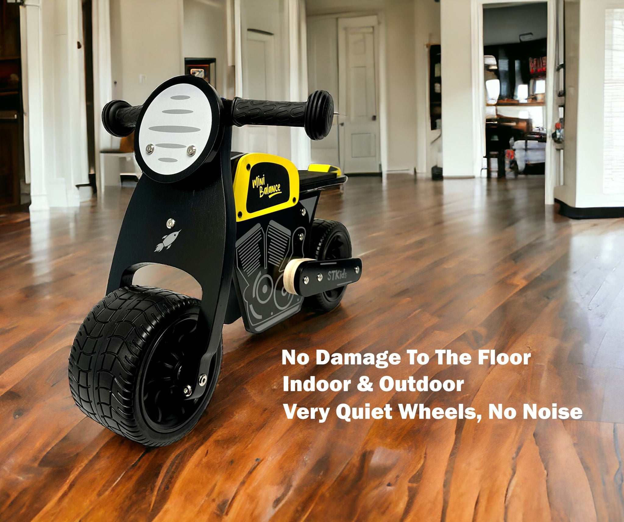 Turn and move with our MiniBalance ride-on! There is no toy that is more fun for developing coordination and motor skills! Easy to maneuver inside and out, the MiniBalance is the perfect first vehicle for your little one. Kids 10-24 months can jump on and roll! Robust and silent, this ride-on is made of resistant wood. Easy to assemble: just snap the bike's front fork into place and you're done.