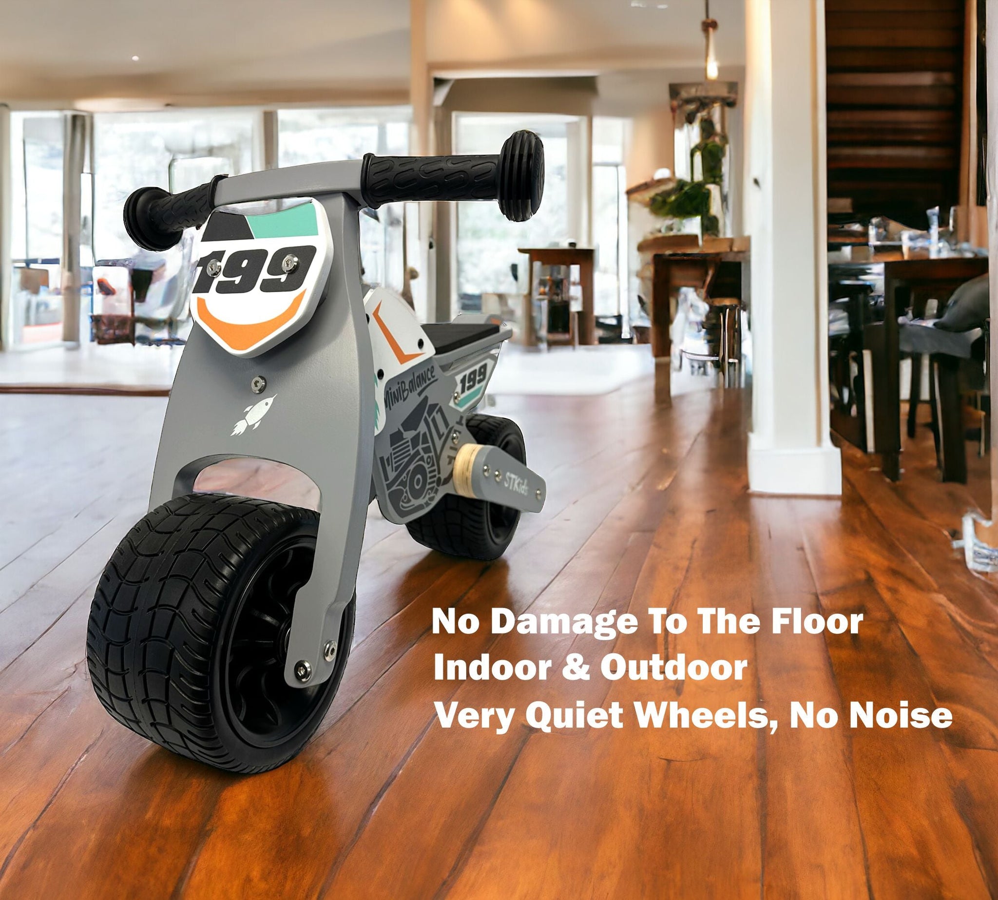 Turn and move with our MiniBalance ride-on! There is no toy that is more fun for developing coordination and motor skills! Easy to maneuver inside and out, the MiniBalance is the perfect first vehicle for your little one. Kids 10-24 months can jump on and roll! Robust and silent, this ride-on is made of resistant wood. Easy to assemble: just snap the bike's front fork into place and you're done.