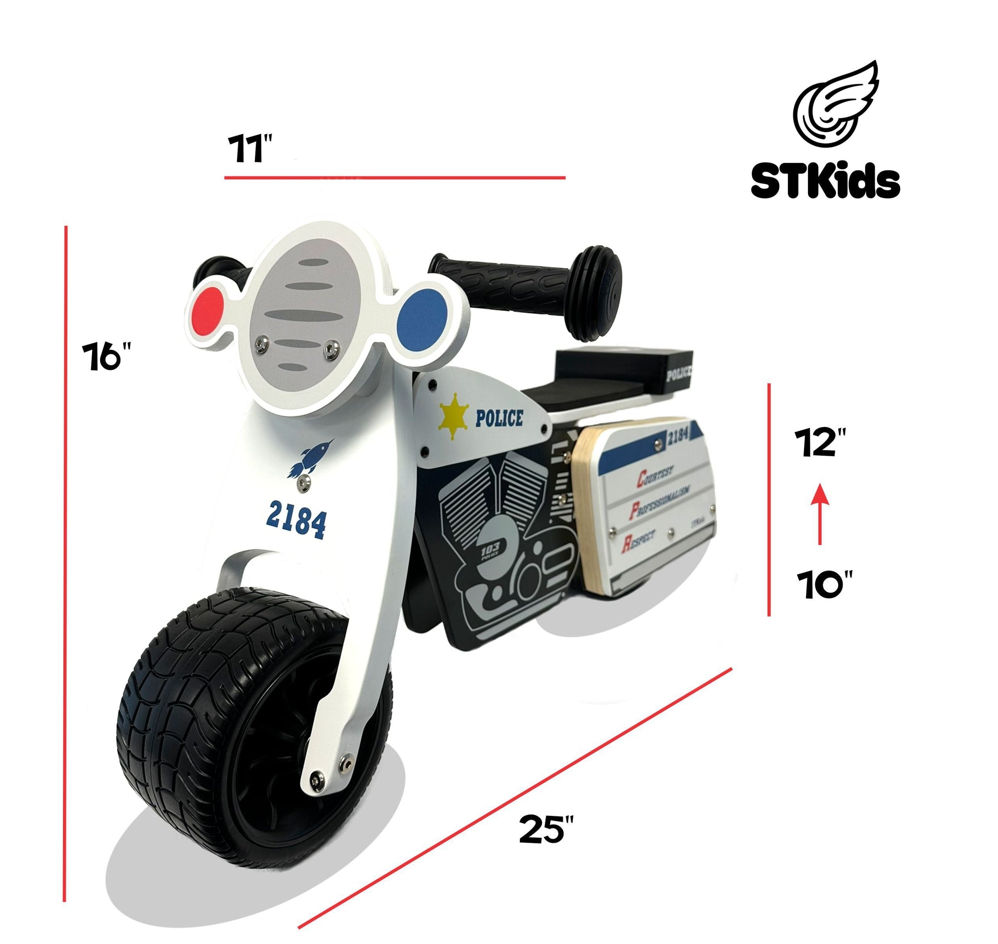 Beautiful Police Patrol Wooden MiniBalance Bike for Babies