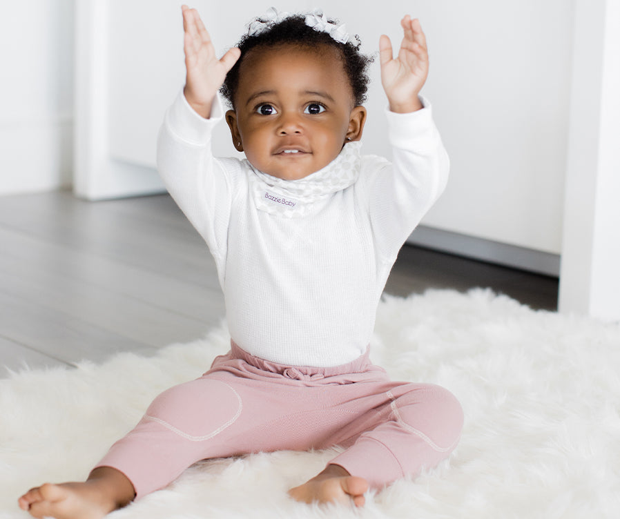 The Modern Movers Joggers in dusty mauve are the ideal pants for active babies who are just learning to crawl. These adorable joggers come equipped with soft knee pads that offer protection during crawling, ensuring comfort and safety for your little one. Crafted from a blend of soft cotton ponti and spandex, these joggers provide flexibility and comfort, allowing your baby to move freely. The trendy dusty mauve color and modern design make them as fashionable as they are functional. Plus, they’re easy to care for and machine washable.