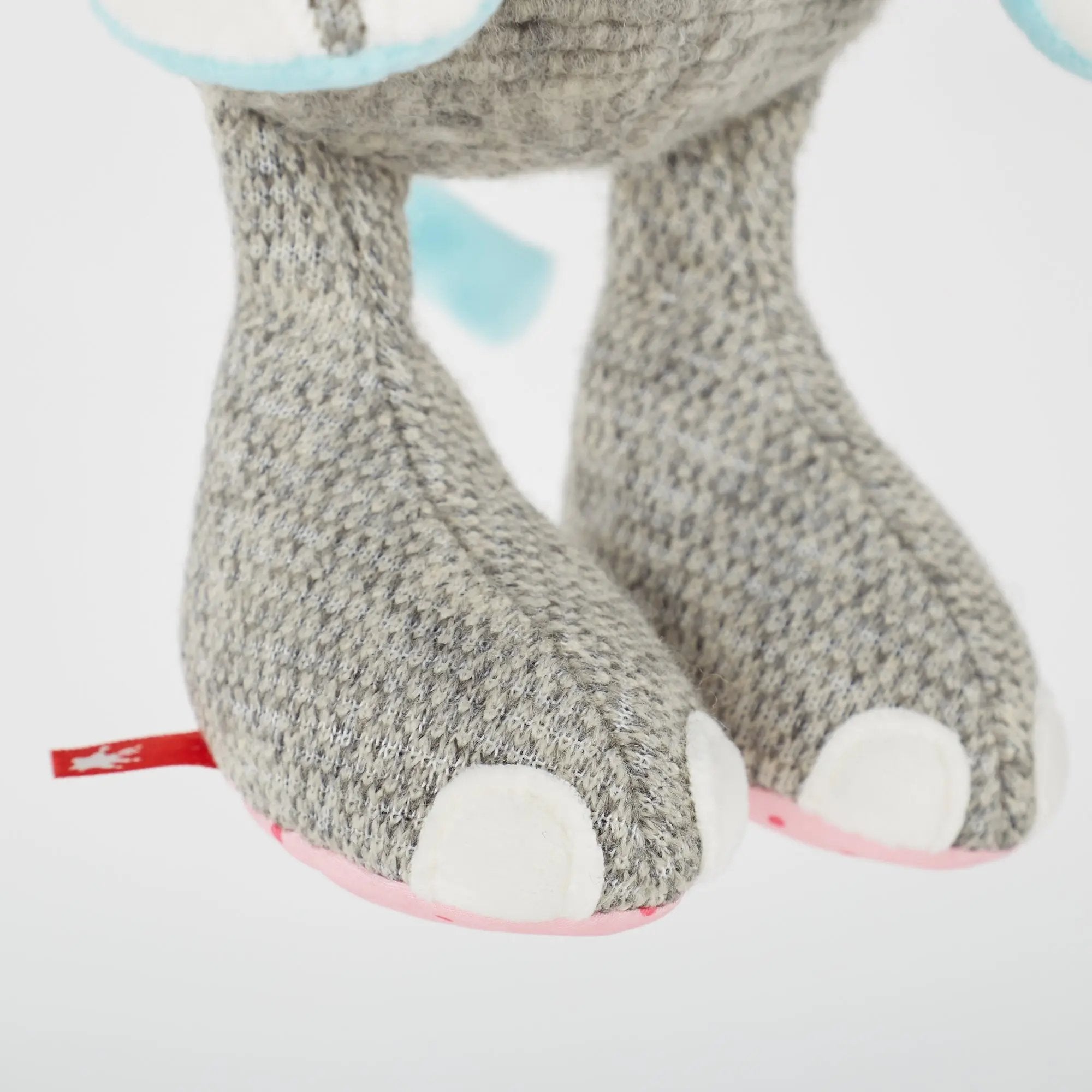 Love wins! If anyone requires further proof, they should meet this adorable baby elephant. Made with high quality materials and outstanding love for detail, she wows young and old folks with her cute knit trunk, blushing cheeks, powder pink soles and chest flower, not to mention those big blue ears and white toe nails.